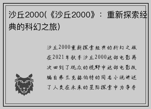 沙丘2000(《沙丘2000》:重新探索经典的科幻之旅)